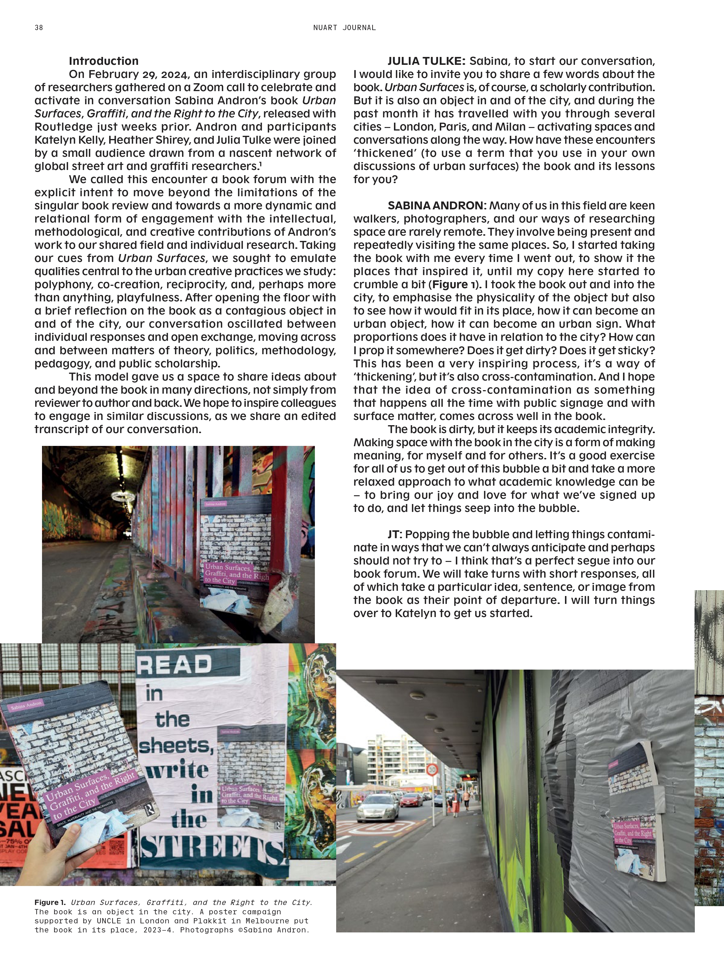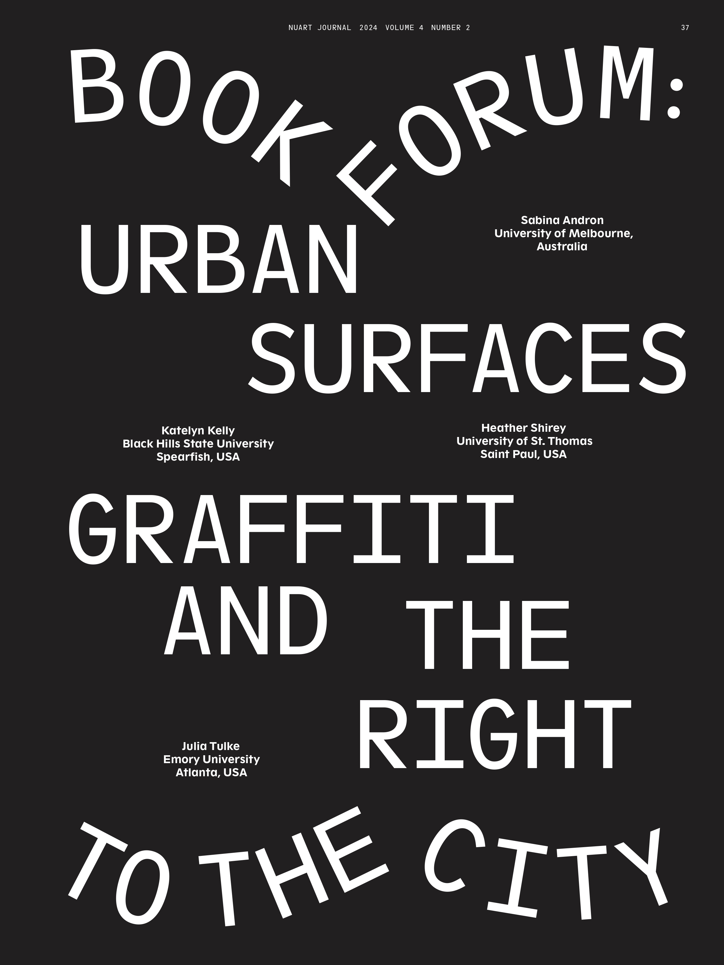 A million thanks to the team at Nuart Journal for publishing a book forum on URBAN SURFACES – open access and with the best design ever!
