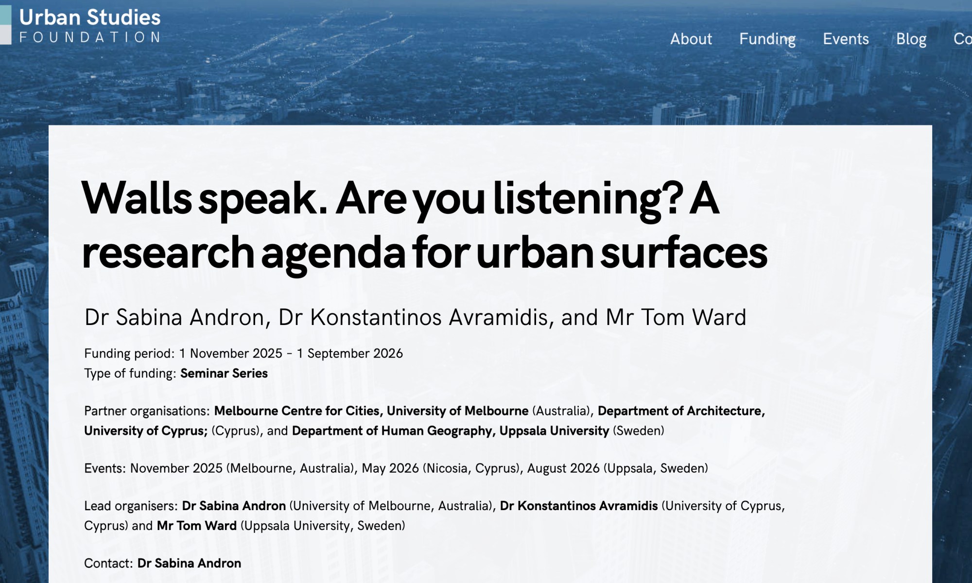 I am thrilled to announce that the Urban Surfaces Research Network has been awarded an Urban Studies Foundation seminar series award for the project ‘Walls speak. Are you listening? A research agenda for urban surfaces’. 🏆
